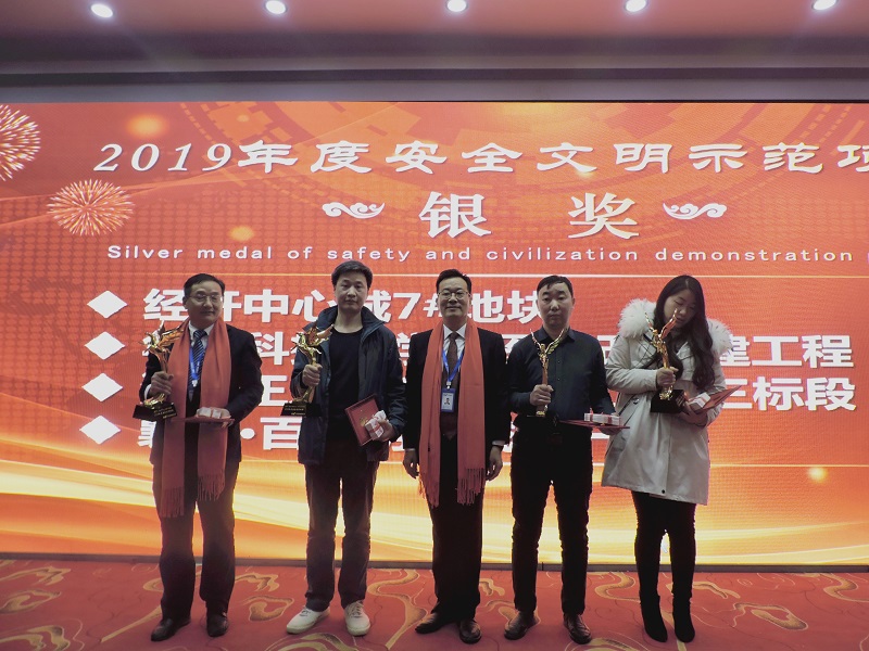 “2019年度安全文明示范項(xiàng)目銀獎(jiǎng)”: 經(jīng)開中心城7號(hào)地塊、清能正榮漢口北一期工程三標(biāo)段、華中科技大學(xué)校醫(yī)院改擴(kuò)建工程、襄陽?百洋明日城市一期;頒獎(jiǎng)人:集團(tuán)公司總經(jīng)理高昌盛