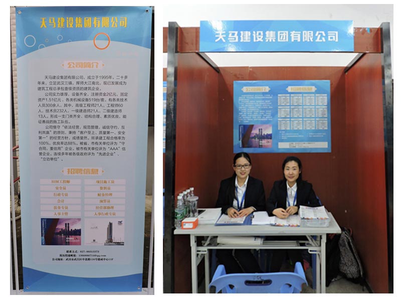 董事長(zhǎng)馮義橋和執(zhí)行總經(jīng)理高昌盛出席了活動(dòng),并履行社會(huì)責(zé)任,大力支持百萬(wàn)大學(xué)生留漢創(chuàng)業(yè)就業(yè)計(jì)劃,在就業(yè)大樓招聘廳開(kāi)設(shè)天馬建設(shè)招聘專區(qū)招攬高素質(zhì)人才。提供12個(gè)崗位信息,現(xiàn)場(chǎng)達(dá)成近40個(gè)就業(yè)意向。