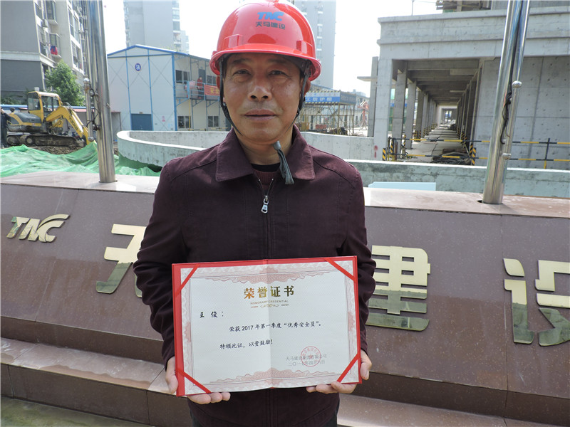 天馬建設(shè)集團(tuán)2017年第一季度安全生產(chǎn)優(yōu)秀安全員:(居住項(xiàng)目)鸚鵡村還建地塊項(xiàng)目安全員——王俊