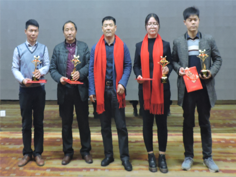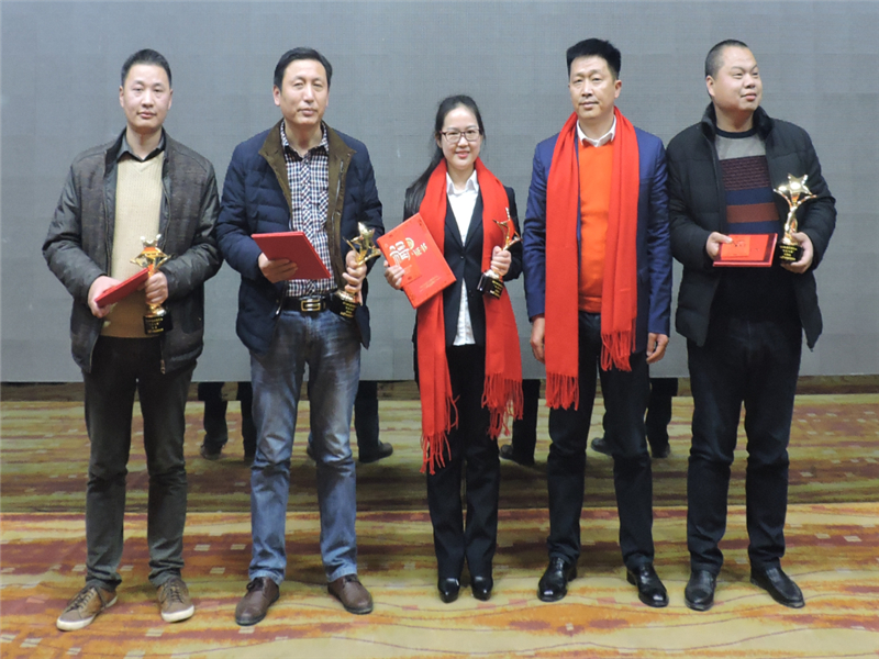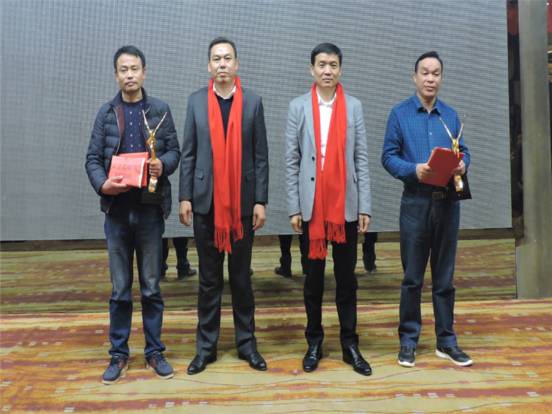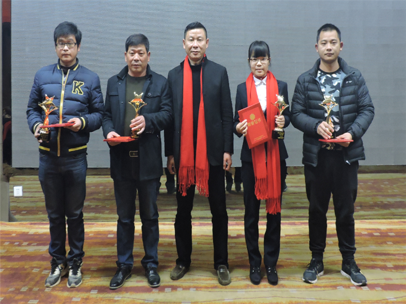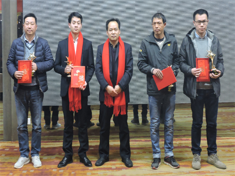 天馬建設(shè)集團“2016年度優(yōu)秀員工——天馬之星獎”:“美聯(lián)·奧林匹克花園九年一貫制學校項目”現(xiàn)場負責人 李緒雄;“天馬建設(shè)集團”預算部 汪波;“鸚鵡村還建地塊項目”質(zhì)檢員 施友明;“中石化相關(guān)配套設(shè)施項目”現(xiàn)場負責人 劉懷南。頒獎人:集團綜合辦主任胡海華。