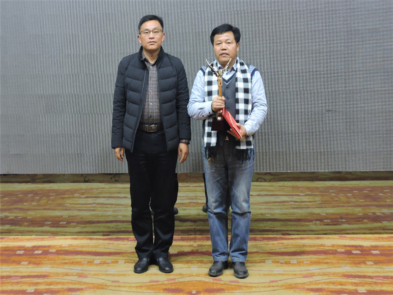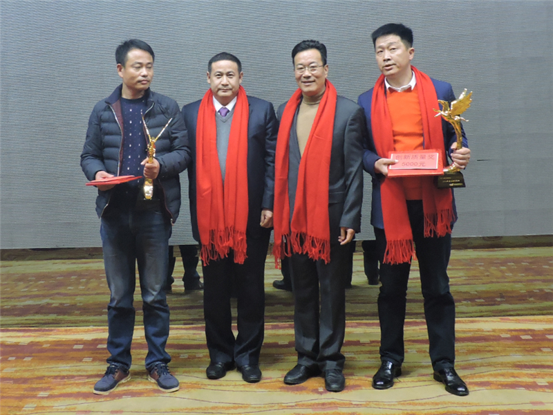 天馬建設(shè)集團“2016年度引進人才獎”:集團總工程師余勝利。領(lǐng)獎代表為萬燕。頒獎人:街道謝主任。