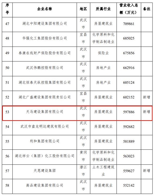 9月24日,在湖北省工商聯(lián)(總商會(huì))十二屆七次常委會(huì)上,發(fā)布了“2021湖北民營(yíng)企業(yè)100強(qiáng)暨社會(huì)責(zé)任報(bào)告發(fā)布會(huì)”。天馬建設(shè)集團(tuán)位列湖北民營(yíng)企業(yè)百?gòu)?qiáng)榜第53位,排名上升18位,實(shí)現(xiàn)企業(yè)實(shí)力大跨越。