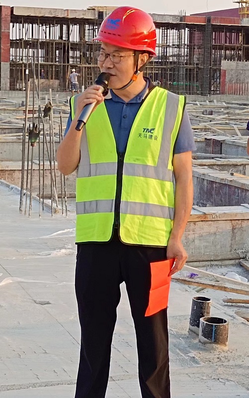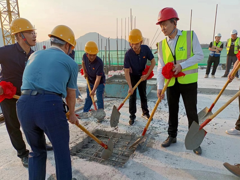 中新開維現(xiàn)代牧業(yè)項目位于鄂州市碧石渡鎮(zhèn)虹橋村,總投資40億元,建設(shè)兩棟26層高養(yǎng)殖大樓,總建筑面積80萬平方米,二號生產(chǎn)大樓總建筑面積約40萬平方米,總層高94.2米,待兩棟大樓全部順利投產(chǎn)后,可實現(xiàn)年出欄生豬120萬頭。該項目將成為中國生豬養(yǎng)殖行業(yè)勞動效率、防疫等級、環(huán)保低碳、人均薪資最高和綜合成本最低的現(xiàn)代化生豬養(yǎng)殖牧場之一。項目自2021年8月1日開工建設(shè)以來,項目管理人員合理統(tǒng)籌人材機,戰(zhàn)高溫、保工期、保投產(chǎn)、保交叉作業(yè)安全,做到不間斷施工,人停機械不停。生產(chǎn)大樓的1-2層為功能設(shè)施用房,3-26層為養(yǎng)殖標(biāo)準(zhǔn)層。養(yǎng)殖標(biāo)準(zhǔn)層采用大平層大單元設(shè)計,實行每層一條龍生產(chǎn)模式,實現(xiàn)豬的同層流轉(zhuǎn)。高層養(yǎng)豬是一系列創(chuàng)新的集成,突破關(guān)鍵技術(shù),實現(xiàn)多項世界首創(chuàng),以規(guī)?;?、現(xiàn)代化、自動化、智能化、環(huán)保化、低碳化的發(fā)展理念促進(jìn)生豬養(yǎng)殖加快轉(zhuǎn)型升級,以創(chuàng)新引領(lǐng)生豬產(chǎn)業(yè)高質(zhì)量發(fā)展。 在封頂儀式現(xiàn)場,總經(jīng)理高昌盛致辭表示,今天是中華人民共和國成立73周年,在這個大喜的日子里,我們迎來了中新開維現(xiàn)代牧業(yè)二號生產(chǎn)大樓的喜封金頂,這是天馬建設(shè)集團(tuán)有限公司與湖北中新開維現(xiàn)代牧業(yè)有限公司長期合作的結(jié)晶。自項目建設(shè)以來,我們嚴(yán)格做到了四個確保:保質(zhì)量、保安全、保進(jìn)度、保項目的和諧安定,如期完成建設(shè)任務(wù)。項目的順利封頂,標(biāo)志著工程建設(shè)取得了階段性的勝利,也為下一步工作開創(chuàng)了良好局面,我們將繼續(xù)秉承“客戶至上、質(zhì)量第一、安全第一”的經(jīng)營理念,堅持“逢建必優(yōu)”的建設(shè)宗旨,繼續(xù)保持與中新開維的深度合作,以一流的管理、一流的質(zhì)量、一流的信譽,建設(shè)一流的工程,以回報中新開維和諸葛董事長的信任與支持。